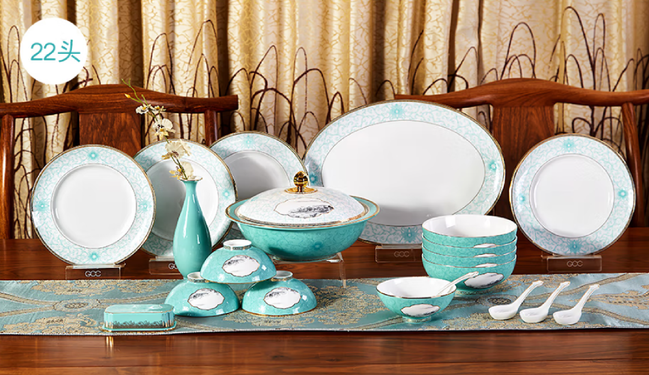 シルクロード22点セットのレトロな中国風のボーンチャイナ食器セット