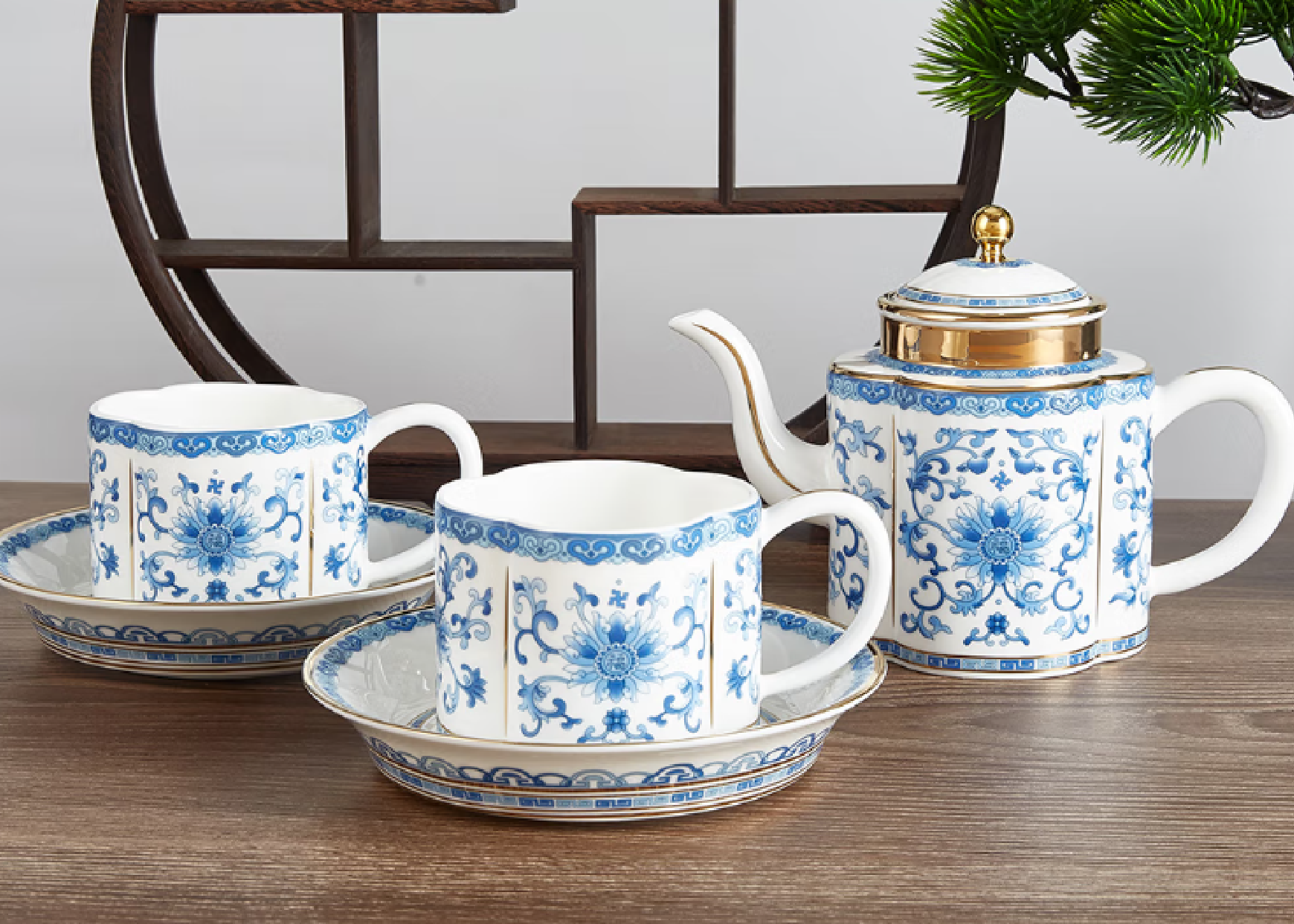 復古中華風の家庭用陶器ティーセット